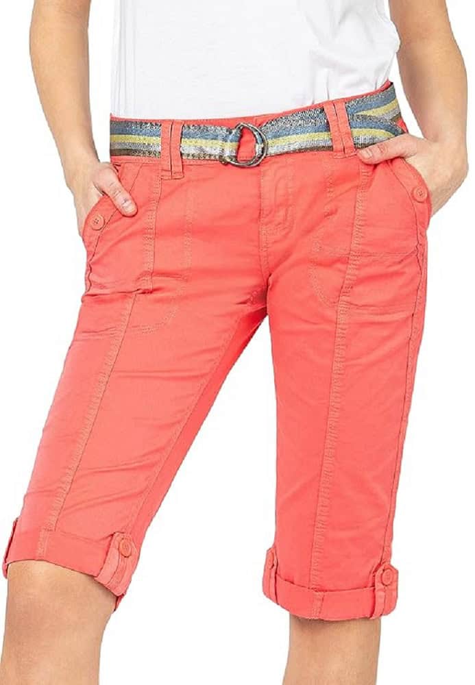 Fresh Made nadrág női bermuda, fényes övvel, orange