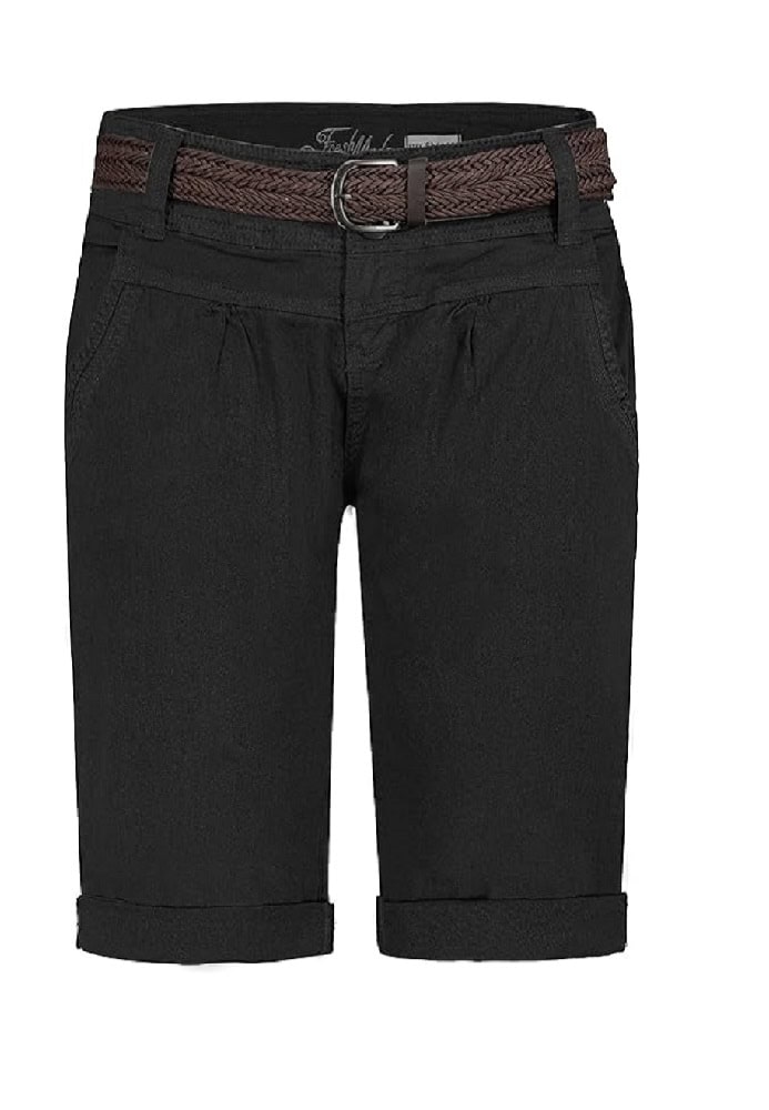 Fresh Made női bermuda rövidnadrág, 3/4-es nyári chino övvel, capri, black