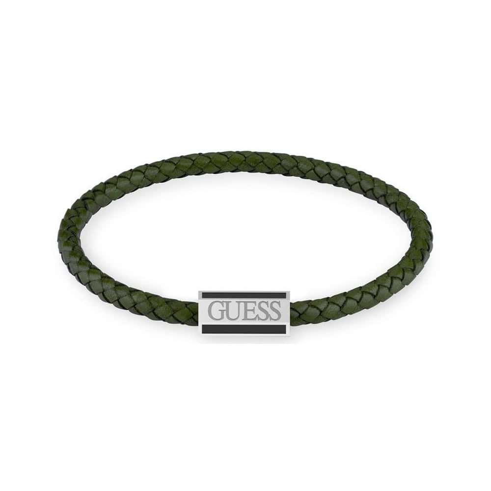 Guess férfi karkötő JUMB02142JWSTDGS – Rozsdamentes acél / Bőr – Ezüst színű / Zöld – Hossz kb. 22 cm – Guess táskával együtt.