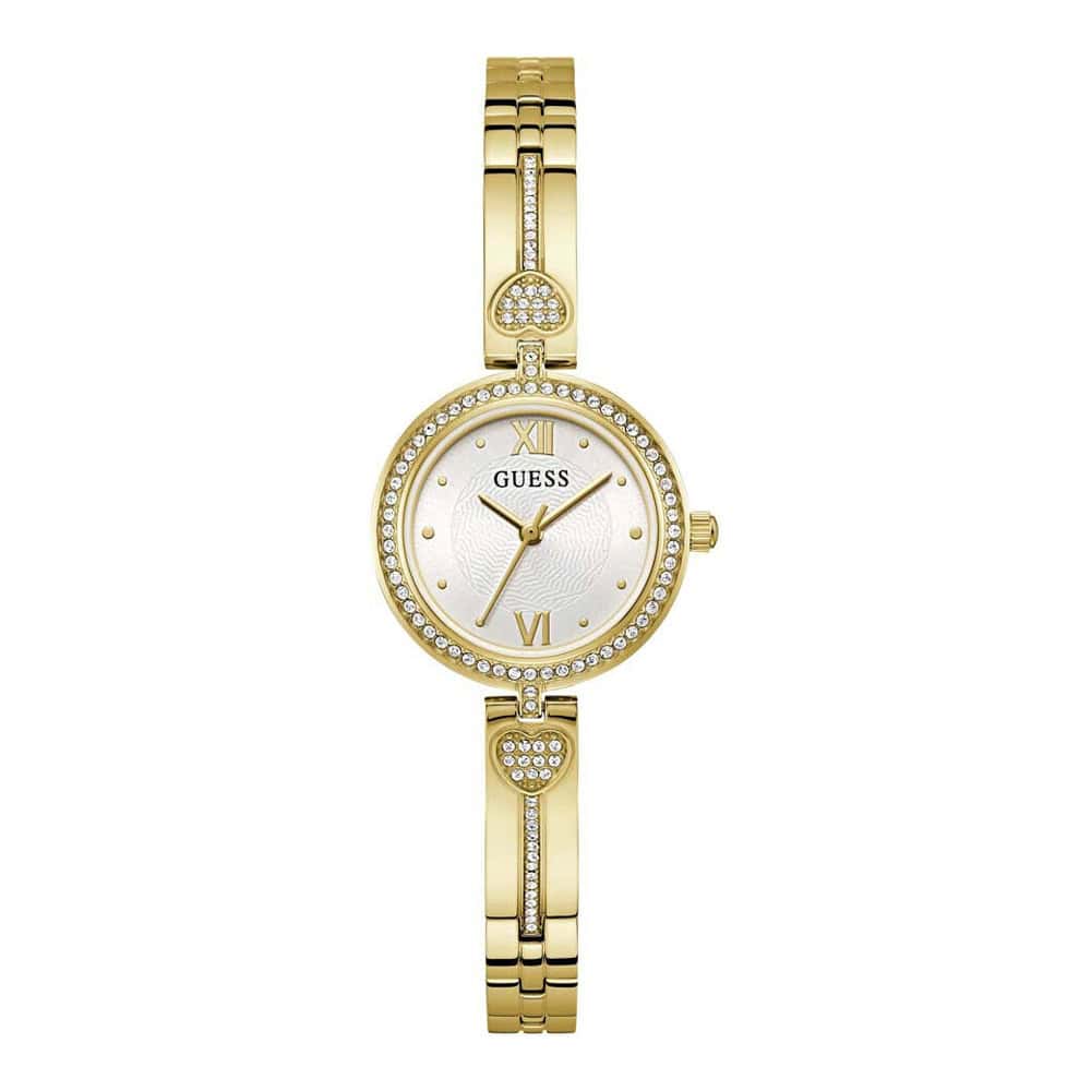 Guess Lovey női karóra GW0655L1 – Rozsdamentes acél tok, ezüst színű bevonattal, polírozott – Rozsdamentes acél szíj, ezüst színű bevonattal, polírozott, klipszes zárral – Kvarc szerkezet, elemes – Vízálló – Kövekkel díszített tok és szíj – Számlap színe ezüst – Tok szélessége kb. 36 mm – Tok magassága kb. 7 mm – Dobozával és információs kártyával együtt. Környezetvédelmi okokból a kezelési útmutató és további információk csak a gyártó weboldalán érhetők el! –