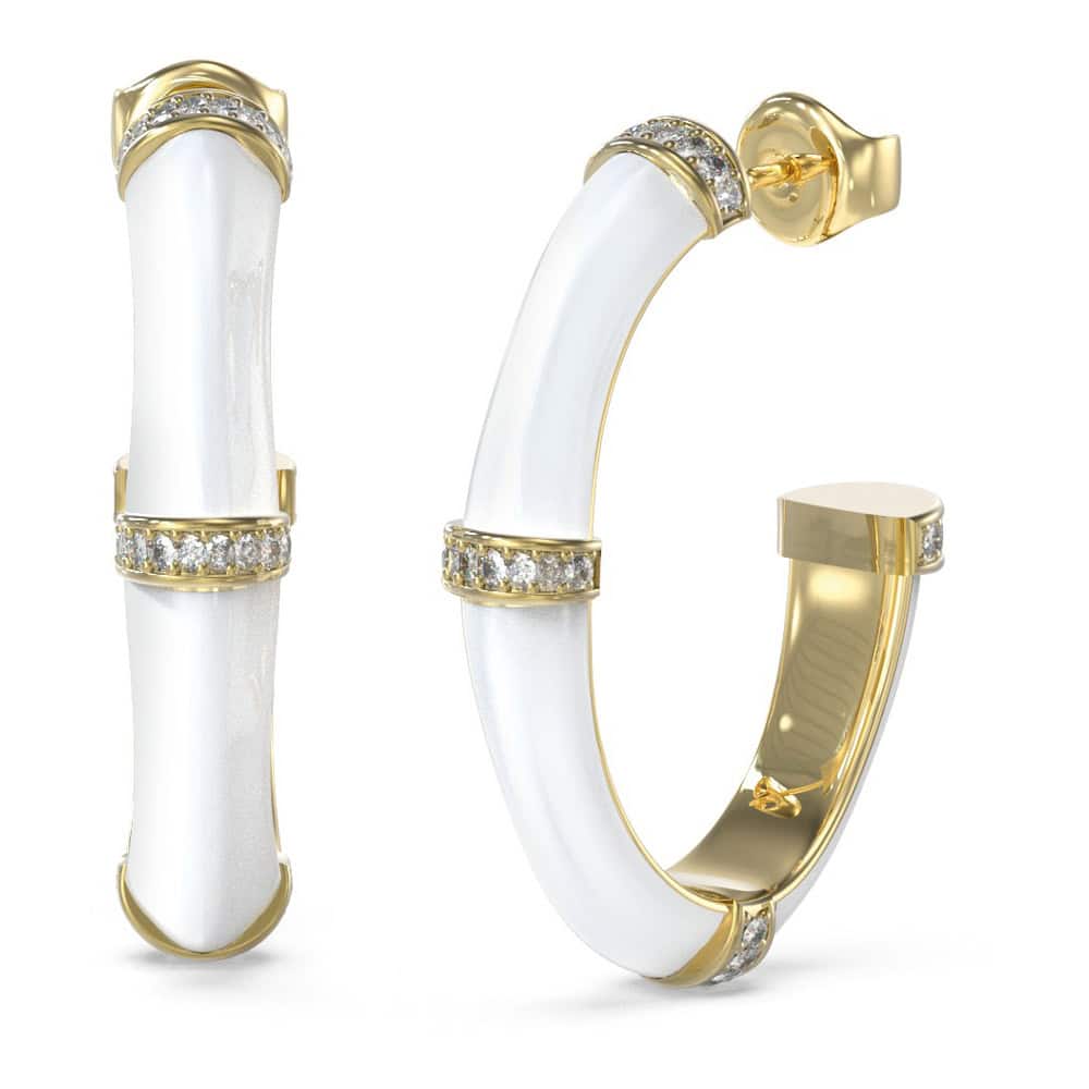 Guess női fülbevaló JUBE05156JWYGWHTU – rozsdamentes acél – arany színű / fehér – kövekkel kirakott – Guess táskával együtt.