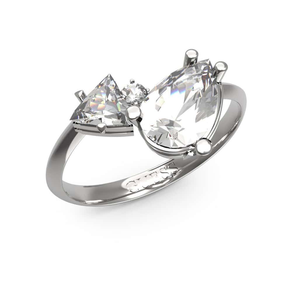Guess női gyűrű JUBR04418JWRH52 – Rozsdamentes acél – Ezüst színű – Kövekkel kirakva – Méret 52 – Guess táskával együtt.