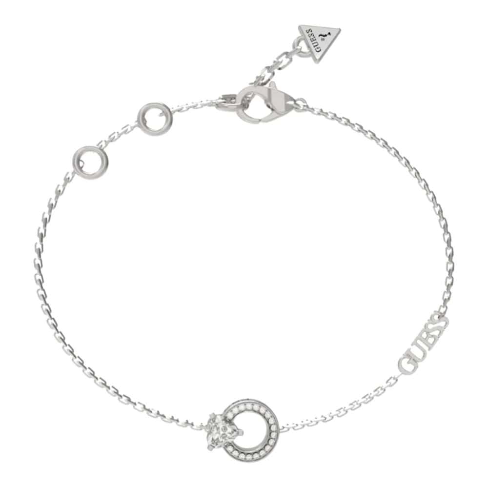Guess női karkötő JUBB04663JWRHS rozsdamentes acél – ezüst színű – kövekkel kirakott – női standard S-es méret – Guess táskával együtt.