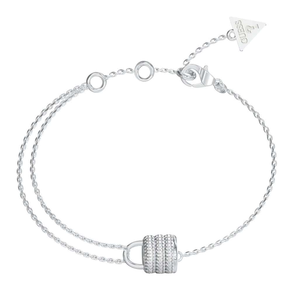 Guess női karkötő JUBB05418JWRHS rozsdamentes acél – ezüst színű – kövekkel kirakott – női standard S-es méret – Guess táskával együtt.