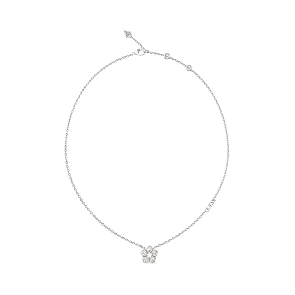 Guess női nyaklánc JUBN04466JWRHTU – Rozsdamentes acél – Ezüst színű – Medál kövekkel – Standard női méret – Guess táskával együtt.