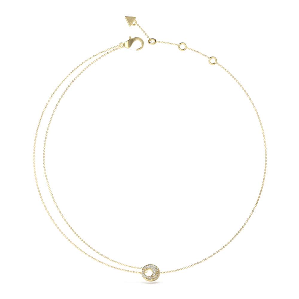 Guess női nyaklánc JUBN05223JWYGTU – Rozsdamentes acél – Arany színű – Medál kövekkel – Standard női méret – Guess táskával együtt.