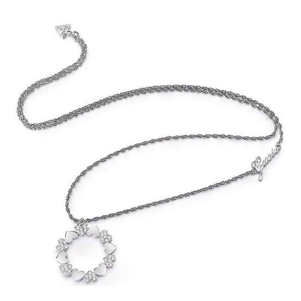 Guess női nyaklánc UBN85048 – Rozsdamentes acél – Ezüst színű – Női standard méret – Medál kövekkel – Guess táskával együtt.