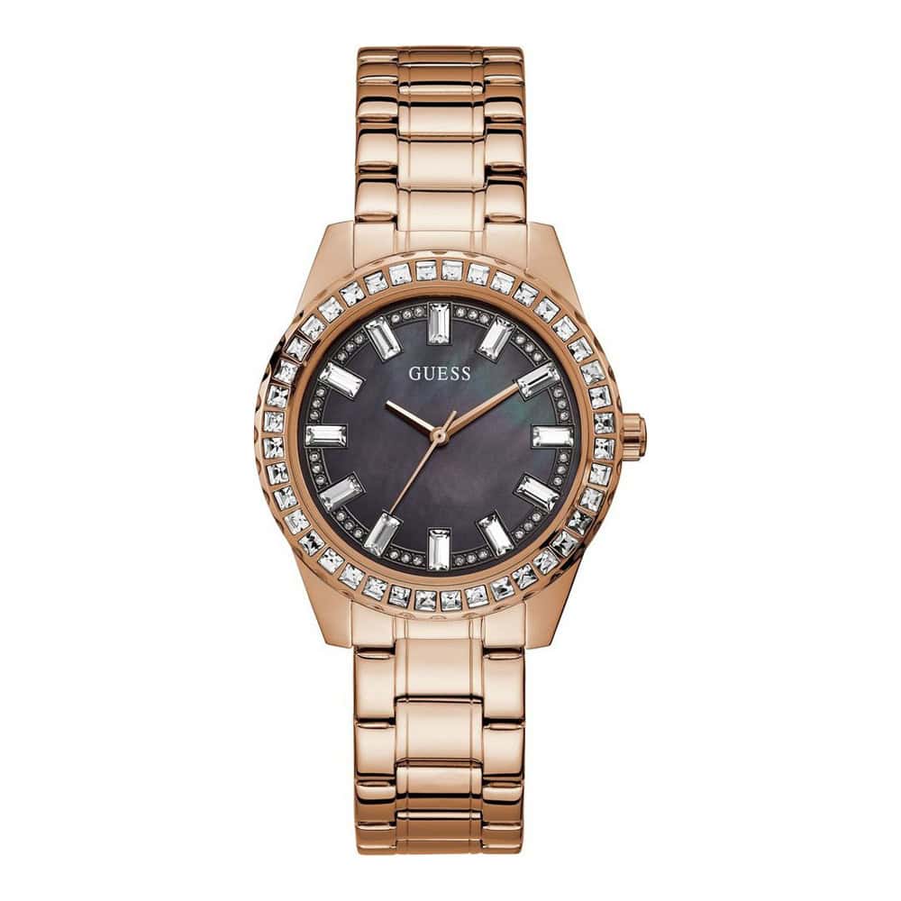 Guess Serena női karóra GW0546L3 – Rozsdamentes acél tok, többszínű bevonat, polírozott – Rozsdamentes acél szíj, többszínű bevonat, polírozott, klipszes zár – Kvarc szerkezet, elemes – Szíj kövekkel – Vízálló – Számlap színe ezüst – Tok szélessége kb. 32 mm – Tok magassága kb. 7 mm – Dobozával és információs kártyával együtt. Környezetvédelmi okokból a kezelési útmutató és további információk csak a gyártó weboldalán érhetők el! –