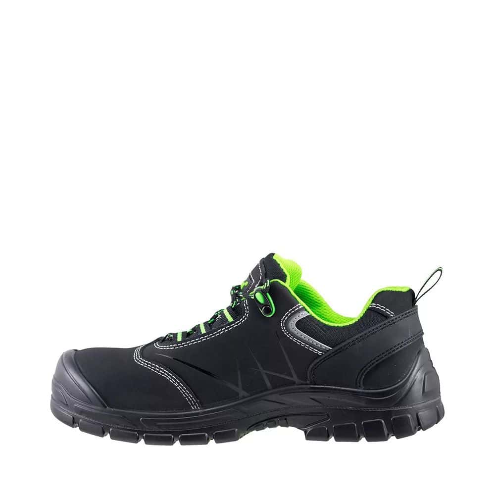 S1-es védelmi képességű munkavédelmi cipő acél orrmerevítővel (lábujjvédővel). Az acél orrmerevítő maxiumum 200J ütés és 15kN nyomás ellen véd.